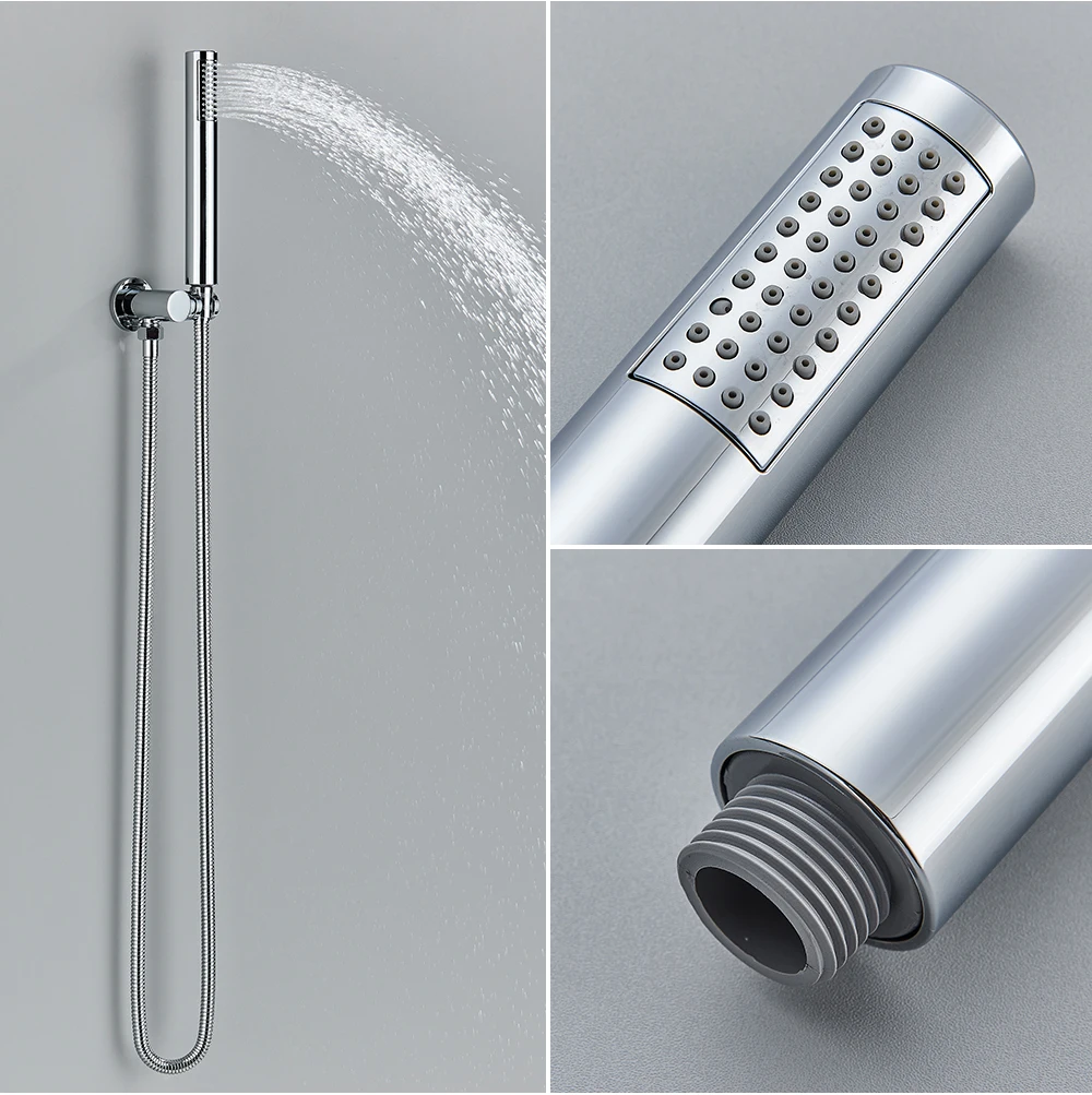 O sistema embutido na parede com bico estilo cachoeira e ducha manual garante praticidade e versatilidade em cada uso. A válvula misturadora oferece controle preciso de temperatura e vazão, proporcionando uma experiência de banho impecável.