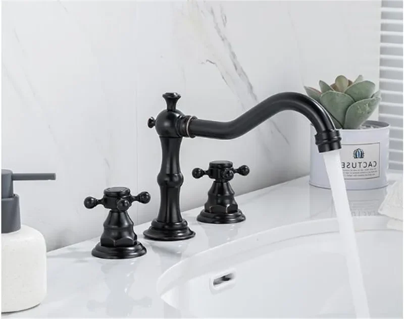 O design de três furos e duas alavancas independentes torna o uso intuitivo e elegante. A bica curva e ampla cria um fluxo suave e silencioso de água, ideal para quem valoriza não só o visual, mas também a experiência.